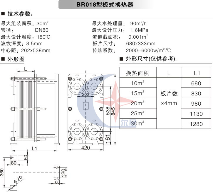 BR018型板式換熱器 是一種新型的節(jié)能熱交換裝置,具有傳熱效果高、結(jié)構(gòu)緊湊、占地面積小、 操作簡便,清洗、拆卸、維護方便,容易改變換熱面積或流程組合等優(yōu)點。 板片人字形波紋,介質(zhì)流動形成湍流狀態(tài),粘膠式密封墊片。傳熱系...